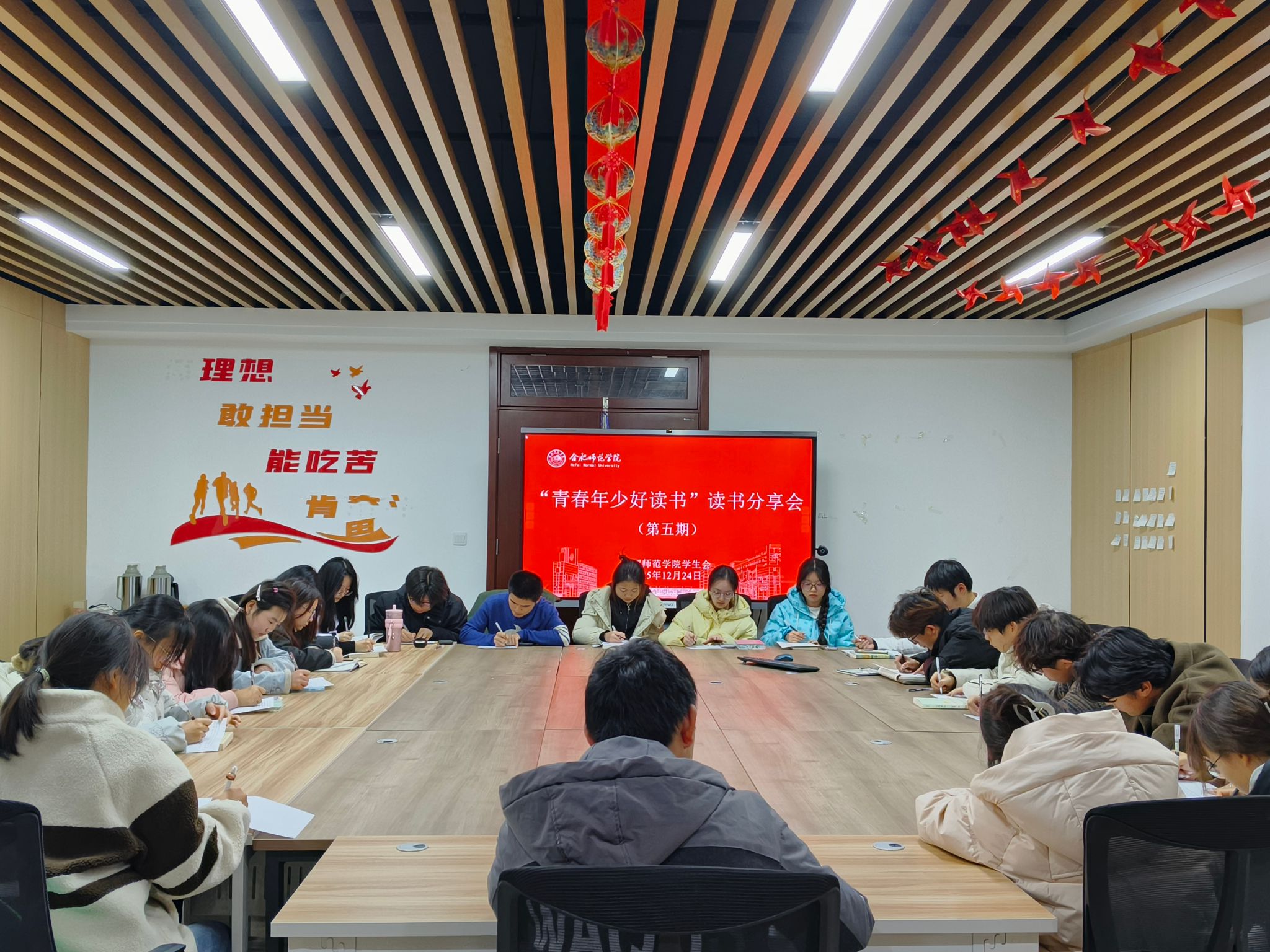 书香润心田,青春共成长。为营造“爱读书、读好书、善读书”的校园文化氛围,12月24日,校学生会在滨湖校区致诚苑“一站式”学生社区举办第五期“青春年少好读书”读书分享会,30余名同学参与。