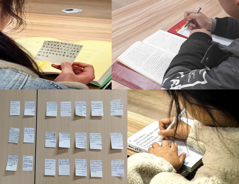 活动在轻松融洽的氛围中拉开帷幕。“击鼓传书”环节,同学们伴着音乐传递书籍,音乐暂停时,手持书籍的同学分享读书心得,现场交流热烈,掌声不断。随后的读书摘抄环节,同学们静心书写,摘录下触动心灵的句子,并在“现场感悟书写”中进一步整理思绪、记录感受,实现了从读到思、从思到写的深度参与。大家纷纷表示,在书香与交流中不仅收获了启发,也增强了阅读的感染力和趣味性。