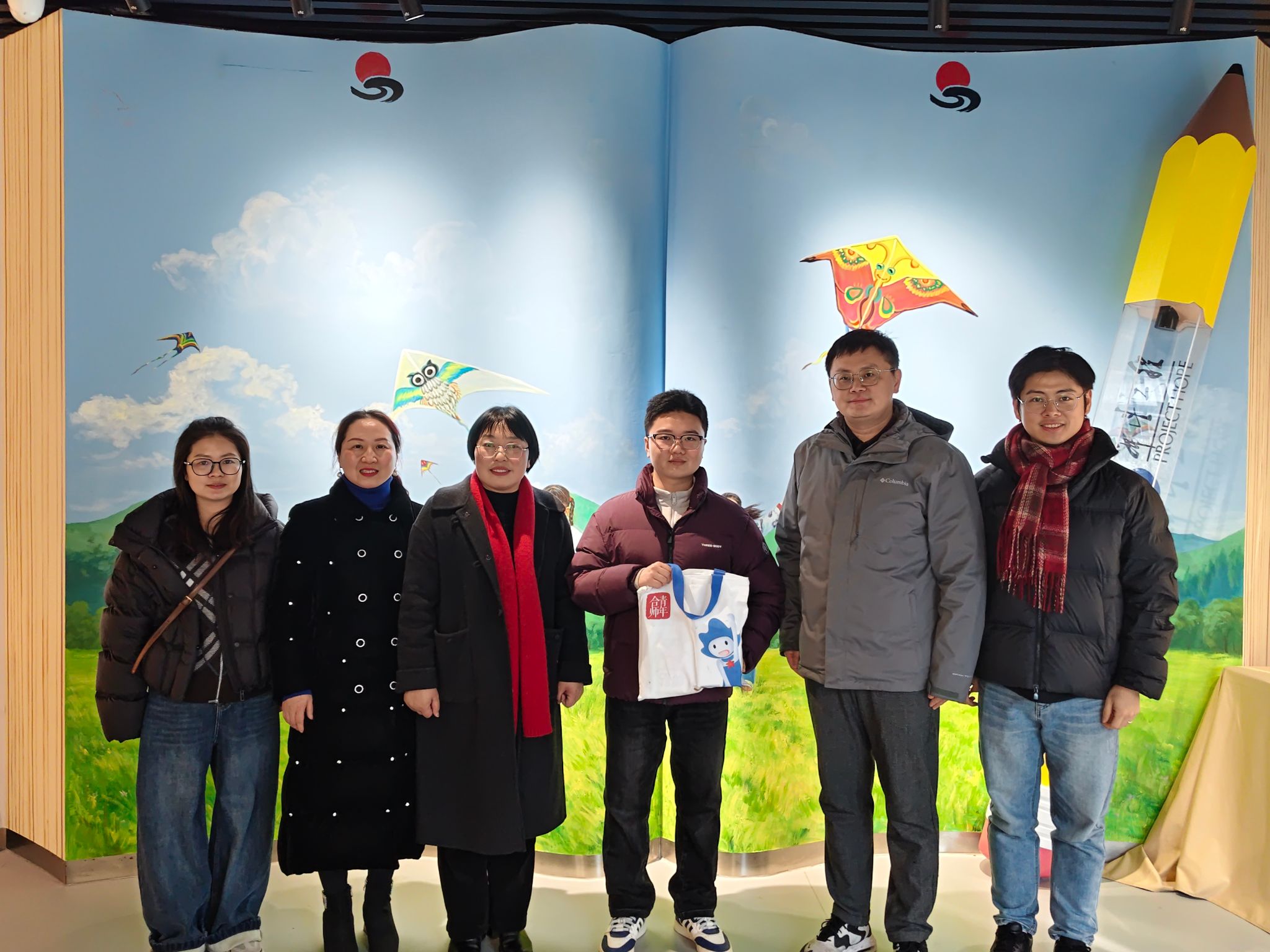 现如今,王雨杨正担任金寨县希望工程展示中心的讲解员,在他的详细讲解中,刁文彬一行深入了解希望工程的发展历程、公益成果、助学项目及社会影响。大家边走边看、边听边交流,详细询问志愿者在日常工作、生活保障、职业发展等方面的情况,认真倾听志愿者在基层服务中的收获与感悟,对主动选择扎根基层、服务社会的青春担当表示高度赞扬,充分展现了合师青年学子的责任与担当。